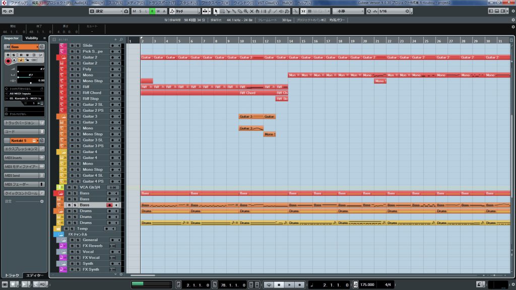 Cubase6カラーのデフォルトカラーに慣れていたのでずっとこんな感じです。 ご参考になれば。