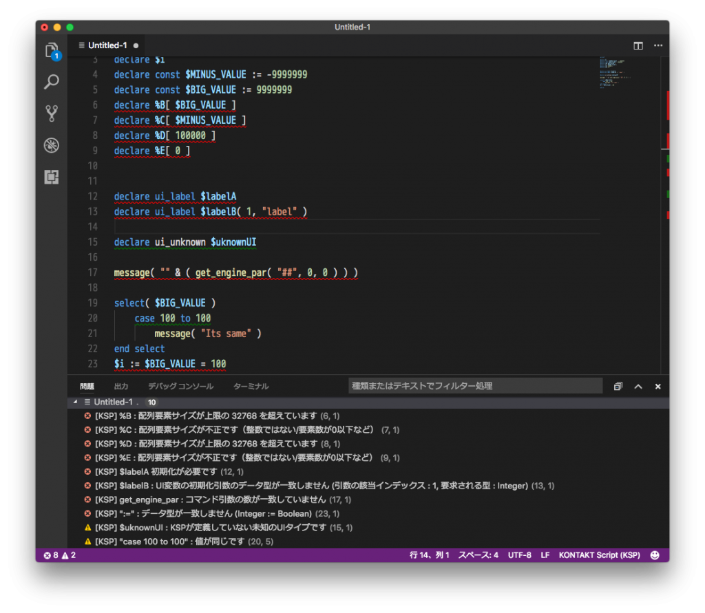 KONTAKT上で確実にコンパイルエラーになるものを事前に検知できます
