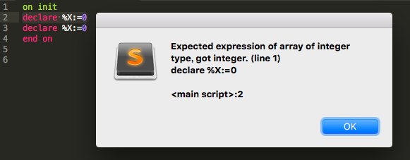 でも、1つでもエラーを検知した時点でダイアログが出て、仮にスクリプトにたくさんエラーが紛れてしまった場合、その都度ダイアログが出るのって、スマートじゃないよなーと思いました。(Sublimeの仕様上の問題だとは思います)