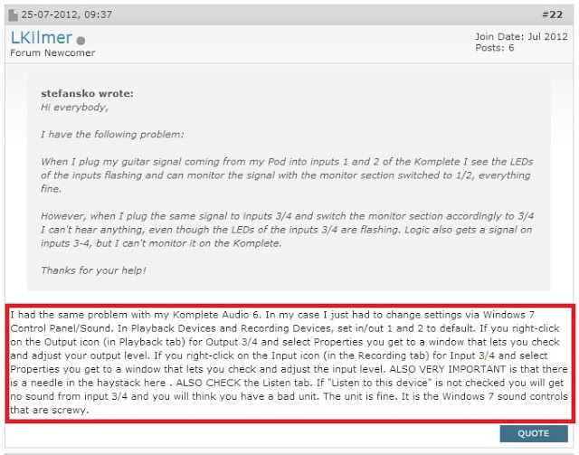 検索キーワードはこれ komplete audio 6 cannot monitor from input 3 4