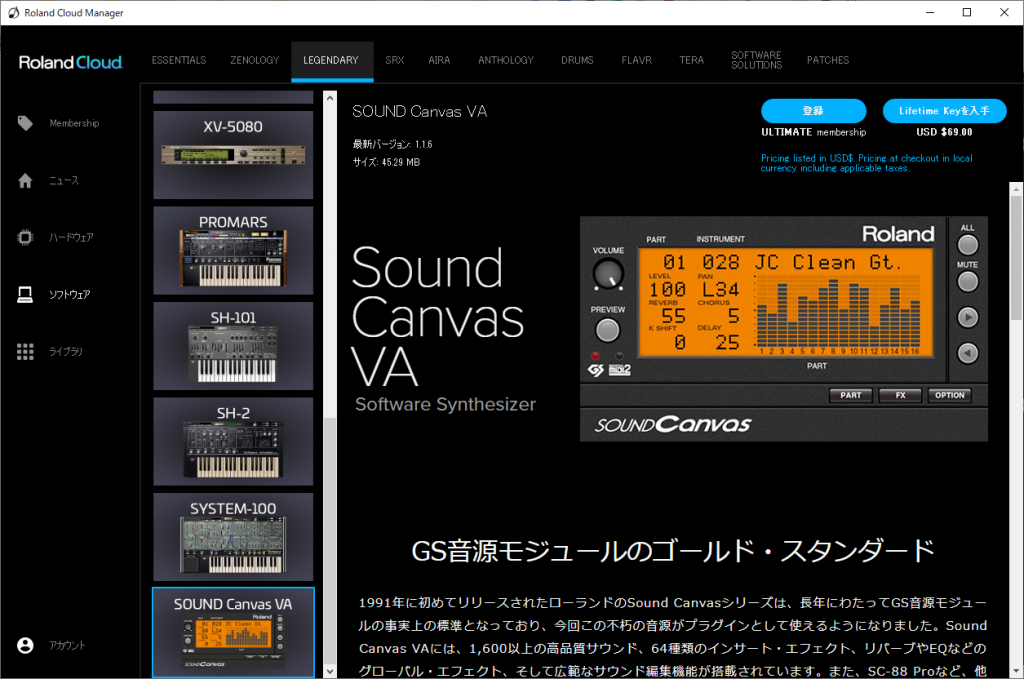 私もRoland Cloud登場より前に、既にSound Canvas VAを購入しています。 サブスクリプションとしては元々提供されてはいましたが、今回Lifetimeライセンス(買い切り)が追加され、ライセンス周りどうなるのかな、ということが思い浮かびました。